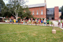 | During the first three sessions, there is one big all-encompassing sports tournament. But in the last two, instead of one big basketball, frisbee, or soccer tournament, many smaller ones are put on. Today was the Marathon (Tournament). Campers and counselors had the choice of running one or two miles. |