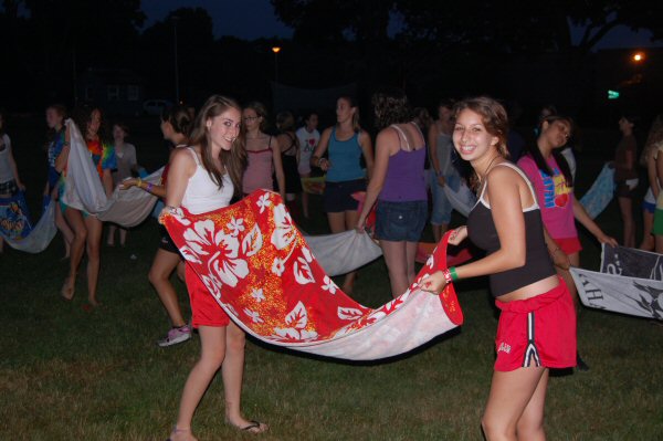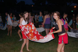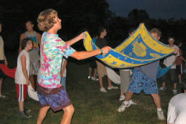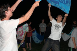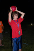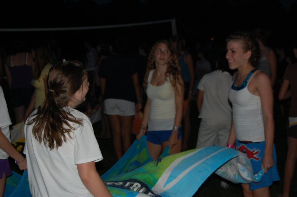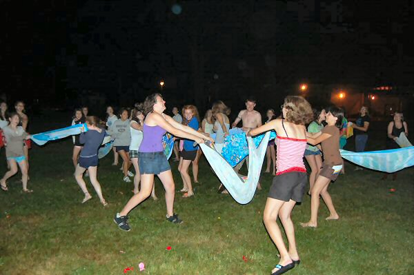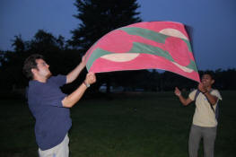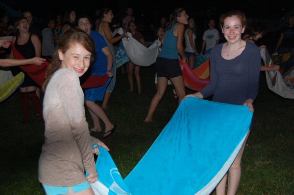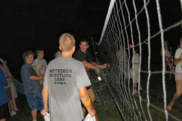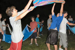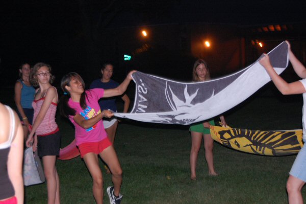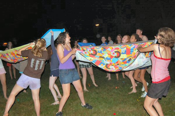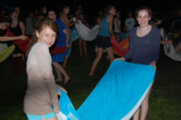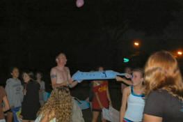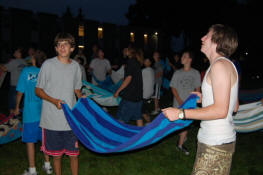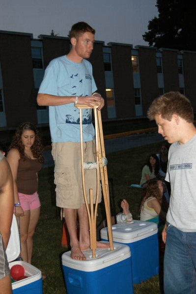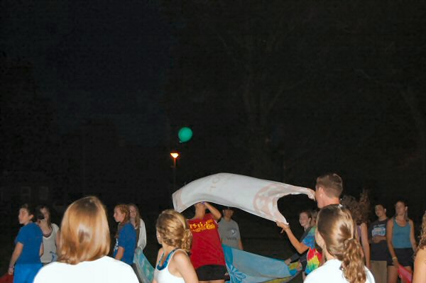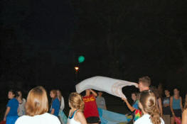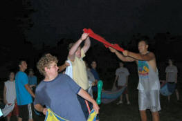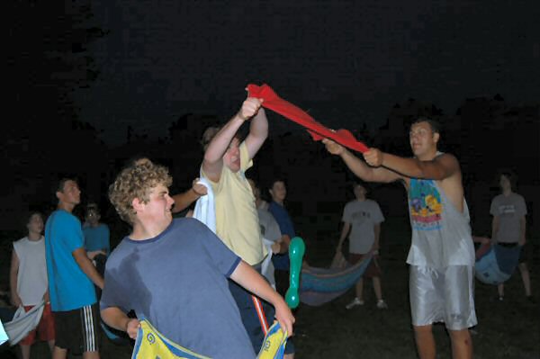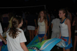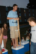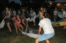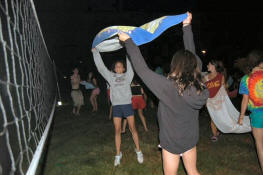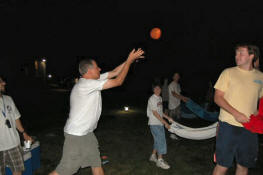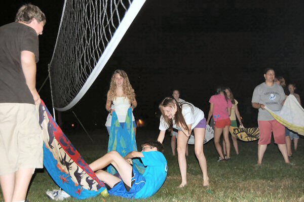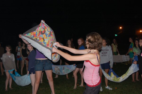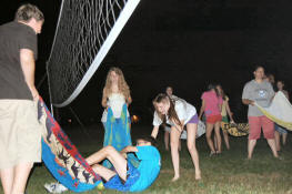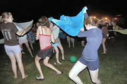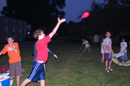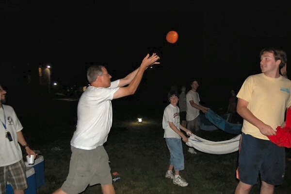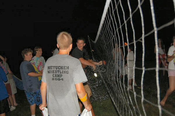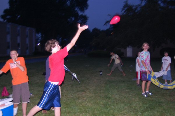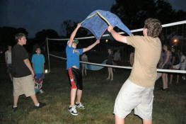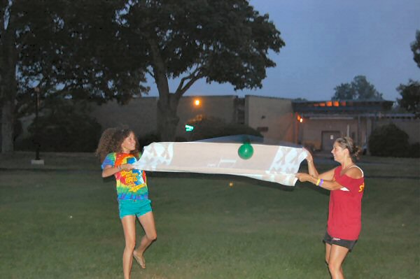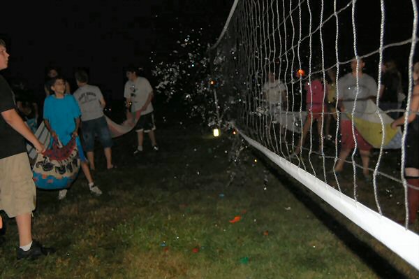 launch and try to catch water balloons as they went over the net. Each