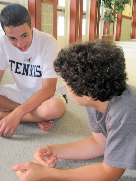 | First, they sat in a circle and told stories about their cats at home. Jeremy's cat, Bootsie, brought a chipmunk into their house, and then his brother, staff assistant Zach, threw it out of the window. Cool! Danielle's cat was posessed, and used to converse with her couch. | |||||
